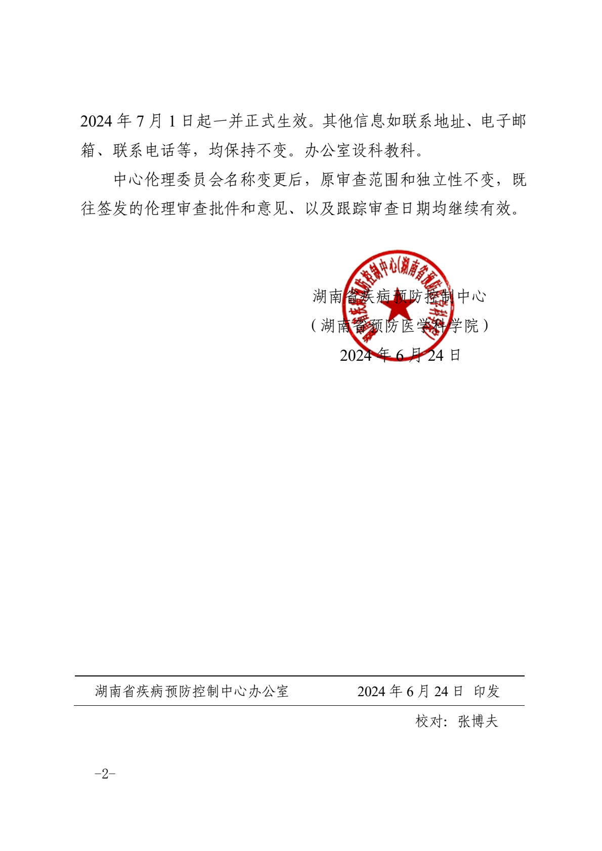 关于变更中心伦理委员会名称的通知